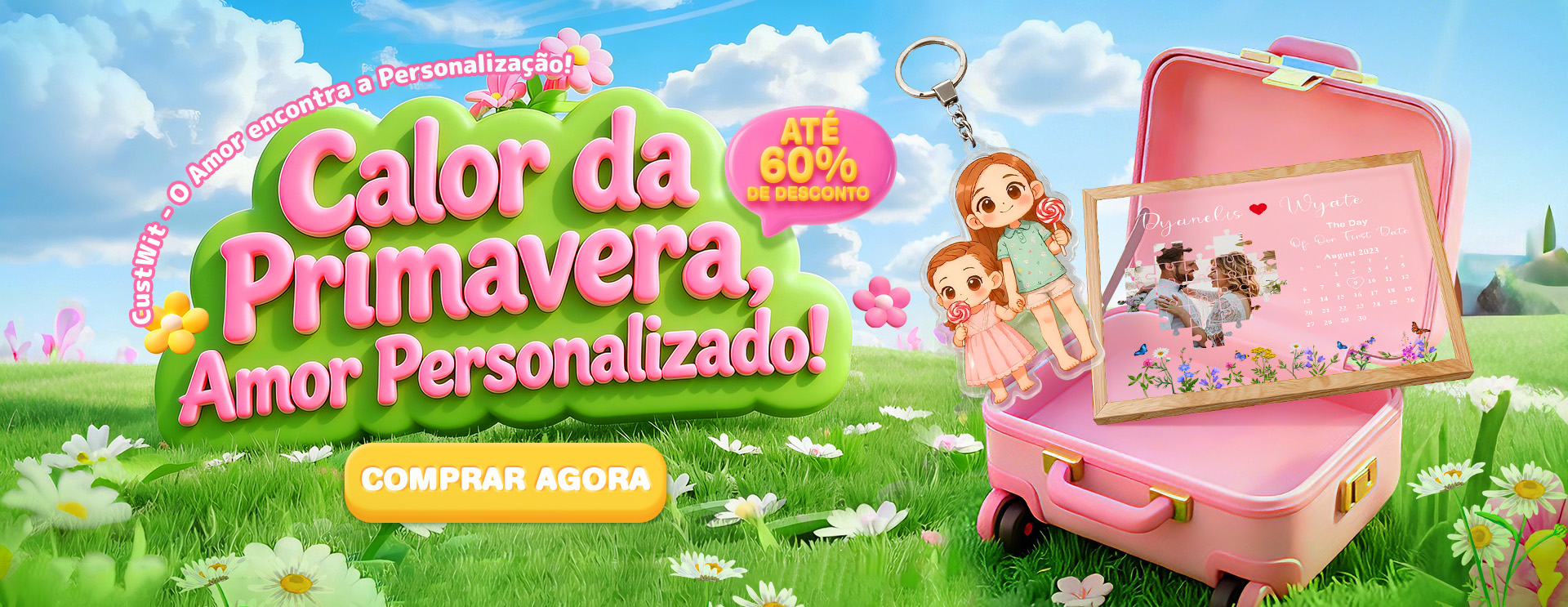Os brindes personalizados da CustWit são agora vendidos na maior parte do mundo. Desde pulseiras de relógio com contas a luzes noturnas personalizadas. Seja quem for que queira surpreender, a CustWit tem o presente certo para essa pessoa ou momento especial. Os nossos presentes são fáceis de personalizar com fotos e texto pessoal. Com apenas alguns cliques, os clientes podem criar um presente único para ocasiões especiais, como aniversários, datas comemorativas, Dia dos Namorados, Dia da Mãe, Dia do Pai ou Natal, ou como presente de agradecimento. Sempre feito com amor!