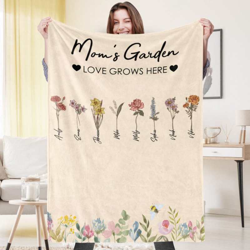 Cobertor De Flores De Aniversário Personalizado, Cobertor Com Nome Personalizado, Presente Para Avó