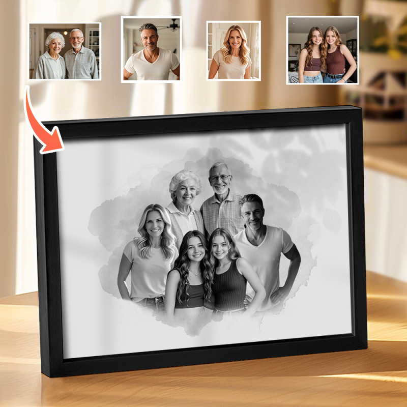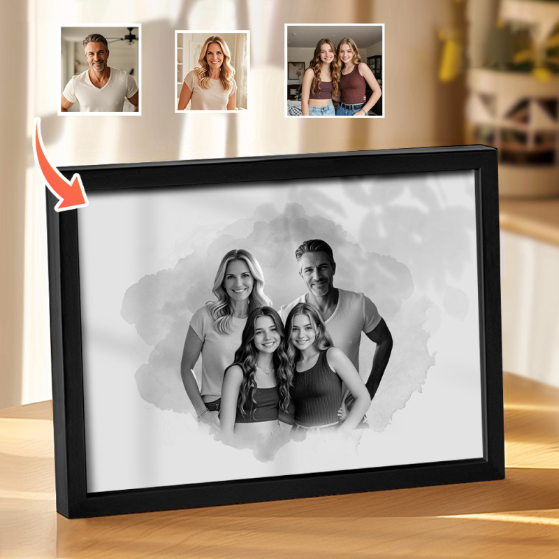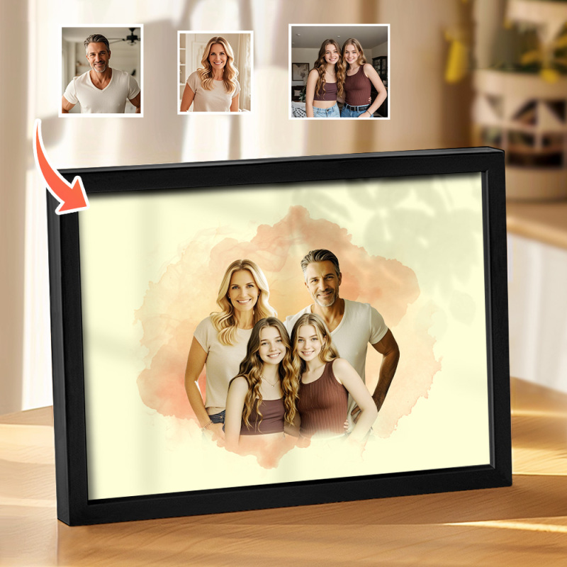 Quadro Personalizado em Aquarela com Foto Familiar Combinada
