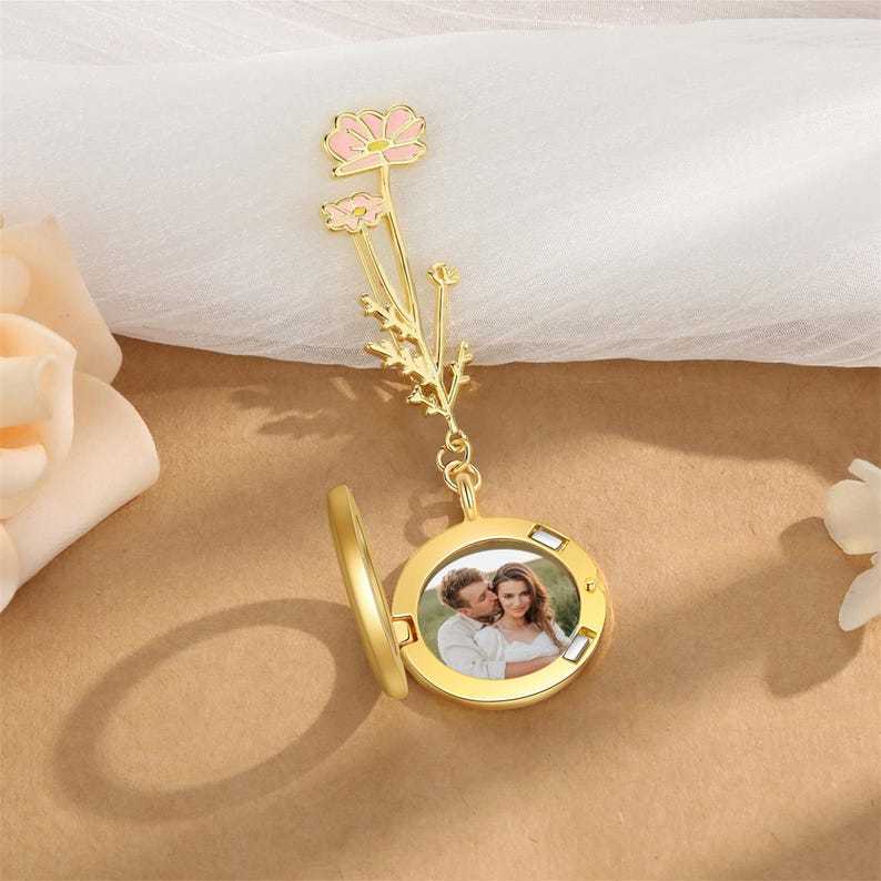 Broche Personalizado Com Foto, Broche Personalizado Com Flor De Nascimento E Foto, Broche Para Mulheres, Presente Para Mães.