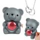 Colar Coração Gravado com Caixa Presente Urso de Rosa