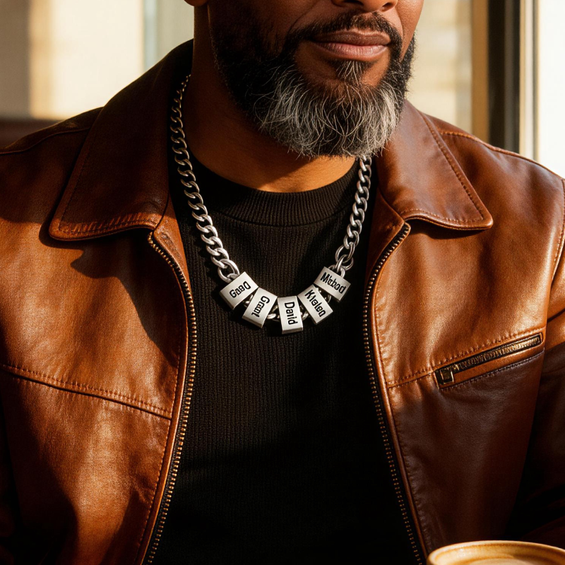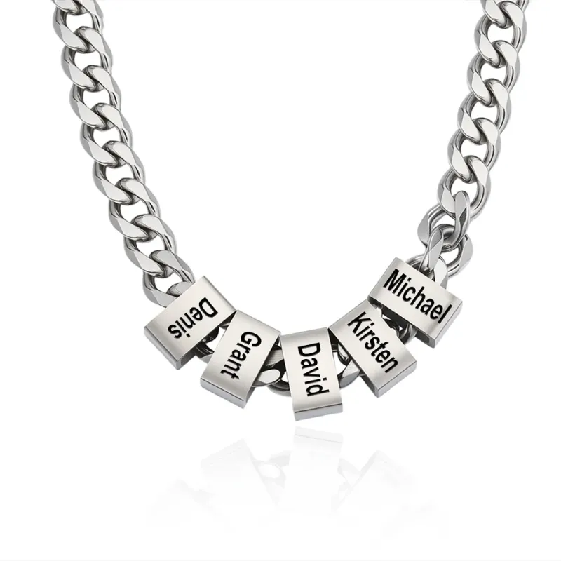 Colar Masculino Minimalista Personalizado Com Corrente E Pingente Com Nomes Gravados (de 1 A 10) - Presente Ideal Para O Dia Dos Pais, Aniversário Ou Qualquer Outra Ocasião Especial.