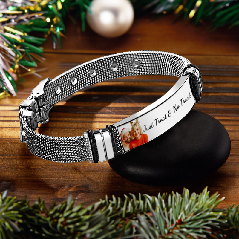 Pulseira De Aço Inoxidável Com Foto Personalizada E Gravada, O Melhor Presente Para O Dia De Natal