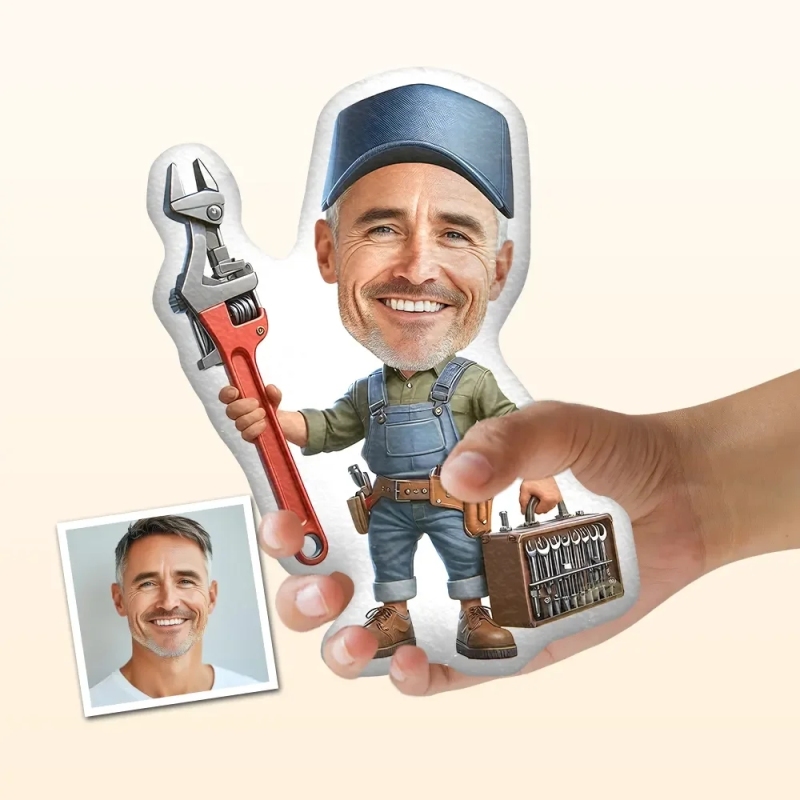 Almofada Personalizada Com Foto Para O Dia Dos Namorados, Presente Para Ele: Almofada Com Rosto De Boneco, Almofada De Corpo Personalizada Com Foto De Um Técnico De Reparos.